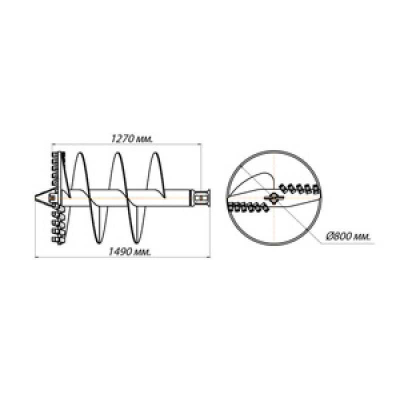ШБЛА (ШнекоБур Лопастной Абразивный) | зубья — РБМ35 / забурник — 300А (грунты I — IV категории) |